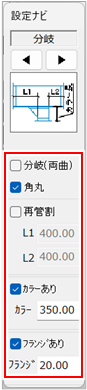 両曲分岐したドン付けを作図する場合は、チェックを付けます。 |