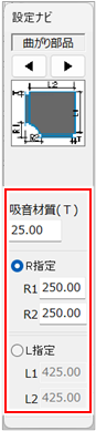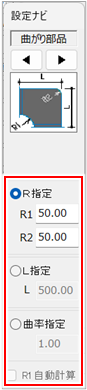 形状寸法の「R」を指定する場合は、チェックを付けて[R1][R2]に寸法を入力します。 |