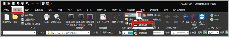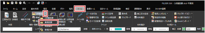 [ホーム]タブ>[2点間距離]プルダウンメニュー>[累積距離] [基本作図]タブ>[2点間距離]プルダウンメニュー>[累積距離] [衛生]タブ>[2点間距離]プルダウンメニュー>[累積距離] [空調]タブ>[2点間距離]プルダウンメニュー>[累積距離] [ダクト]タブ>[2点間距離]プルダウンメニュー>[累積距離] [電気]タブ>[2点間距離]プルダウンメニュー>[累積距離] [ツール]タブ>[2点間距離]プルダウンメニュー>[累積距離] [画像ツール]タブ>[2点間距離]プルダウンメニュー>[累積距離] [設計ツール]タブ>[2点間距離]プルダウンメニュー>[累積距離] [傍記]タブ>[2点間距離]プルダウンメニュー>[累積距離] [建築躯体]タブ>[2点間距離]プルダウンメニュー>[累積距離] |
