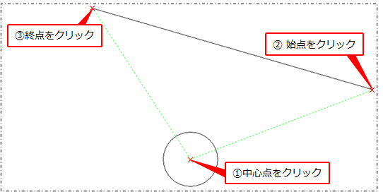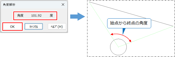 始点・終点を指定して角度を計測する場合始点・終点を指定して角度を計測する場合