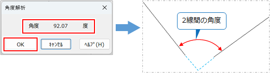 [角度解析]ダイアログが表示され、計測結果が表示されます。