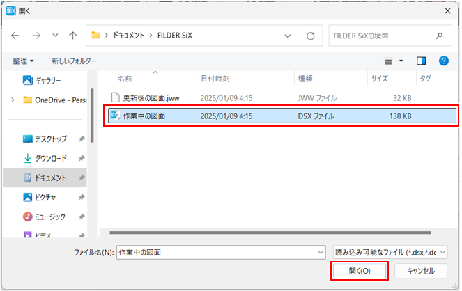 ここでは、FILDER SiXの図面ファイルを指定します。