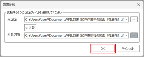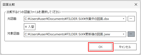 比較元図面と比較対象図面を入れ替える場合は、[入替]ボタンをクリックします。