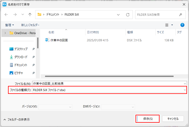 )をクリックして、[ファイルの種類]から[FILDER SiXファイル(*.dsx)]を選択し、[保存]ボタンをクリックします。
