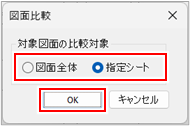 [図面比較]ダイアログが表示された場合は、手順3・手順4と同様に比較対象や比較するシートを選択します。
