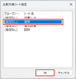 例:手順4で比較対象とするシートに[建築]を選択した場合は、電気設備は表示されません。