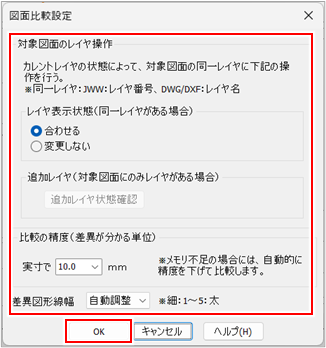 図面比較の条件を設定し、[OK]ボタンをクリックします。
