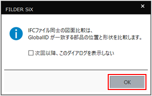 [元図面]と[対象図面]の両方がIFC形式の図面ファイルの場合のみ、以下の確認ダイアログが表示されます。