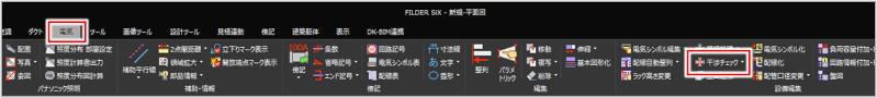 [電気]タブの[干渉チェック]プルダウンメニューから[干渉箇所確認]コマンド(