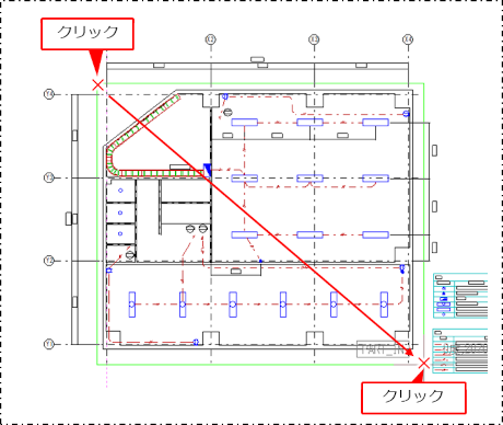結果一覧で選択した干渉箇所を、図面や3D画面で中心に表示します。 |
