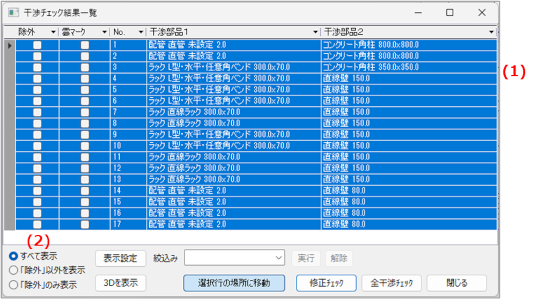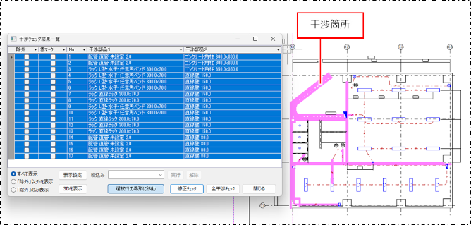 干渉チェックの結果を一覧で表示する(干渉チェック結果一覧)