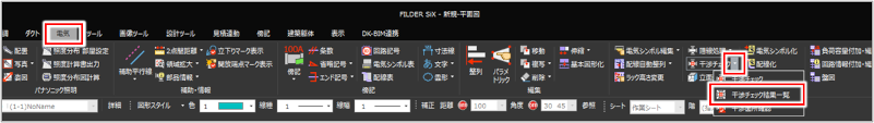 [電気]タブの[干渉チェック]プルダウンメニューから[干渉チェック結果一覧]コマンド(