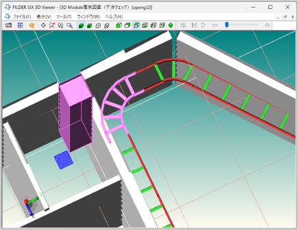 配管、ダクト、躯体(柱・壁・梁)の干渉をチェックし、干渉している箇所を強調表示します。