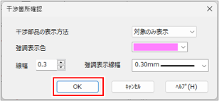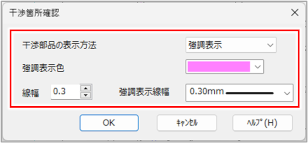 [干渉箇所確認]ダイアログで干渉箇所の表示方法を設定します。