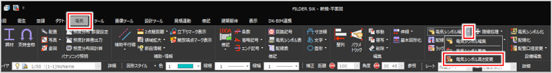 [電気]タブの[電気シンボル編集]プルダウンメニューから[電気シンボル高さ変更]コマンド(