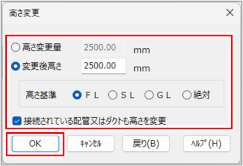 接続されている配管又はダクトも高さを変更 |