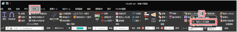 [電気]タブの[電気シンボル編集]プルダウンメニューから[電気シンボル置換]コマンド(