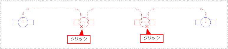 作図する時点で配線を自動整列させるには、[設定]タブの[電気設定]コマンドをクリックして実行し、[配線]タブの[基本]タブから[自動整列する]を設定します。詳しくは、以下を参照してください。 |