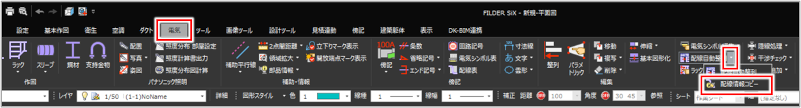 [電気]タブの[配線自動整列]プルダウンメニューから[配線情報コピー]コマンド(