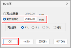 [変更後高さ]に変更後の高さを入力し、[OK]ボタンをクリックします。