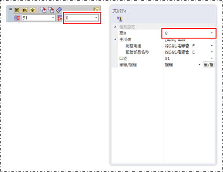 [配管高さ変更]コマンドで高さを変更する場合[配管高さ変更]コマンドで高さを変更する場合