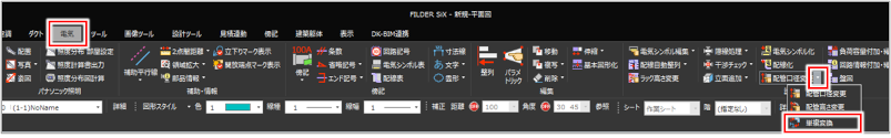 [電気]タブの[配管口径変更]プルダウンメニューから[単複変換]コマンド(