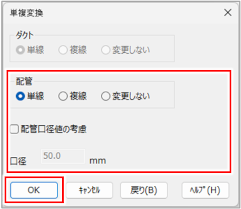単線または複線に変換する基準となる口径を入力します。[配管口径値の考慮]にチェックを付けた場合に入力できます。 |
