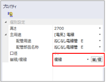 [プロパティ]から電線管の単線/複線を切り替えることもできます。 コマンドキャンセルの状態で変更対象の電線管をクリックすると[プロパティ]が表示されます。[単/複]ボタンをクリックすると、単線と複線が交互に切り替わります。