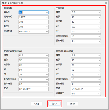 [操作4:回路情報入力・編集]ダイアログが表示されます。