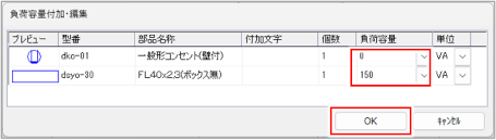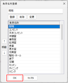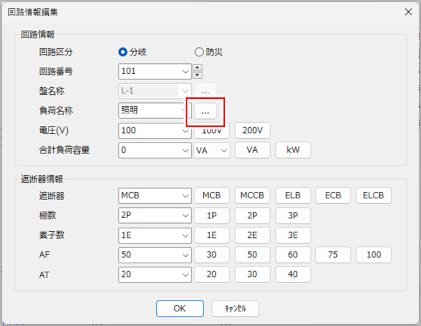 [負荷名称登録]ダイアログが閉じ、[回路情報編集]ダイアログに戻ります。