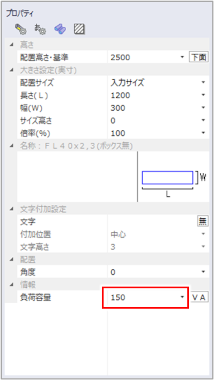 負荷容量は、電気シンボルをクリックして表示される[プロパティ]でも変更できます。複数の電気シンボルを選択した場合は、一括で同じ値に変更されます。