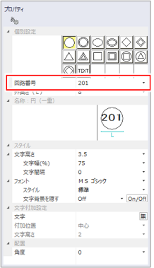 回路番号は、図面で電気シンボルをクリックして表示される[プロパティ]でも変更できます。