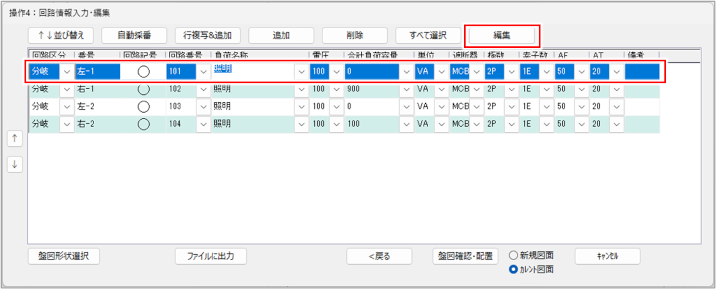 盤図に設定した回路情報を編集します。