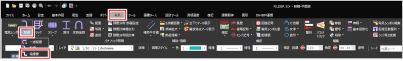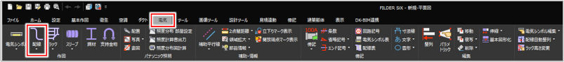 [電気]タブの[配線]プルダウンメニューから[電線管]コマンド(