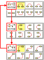 電気シンボル間の配線の渡りパターンを選択します。 水平・垂直・斜めなど、配線を作図する電気シンボルの位置関係によって、表示される渡りパターンが自動的に切り替わります。 手動で切り替える場合は、左上のアイコンをクリックするか、[Alt]キーを押しながら右クリックします。
