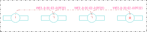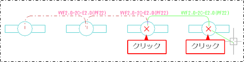 電気シンボルに接続していない配線の端部に、自動的に開放端点マークを表示できます。開放端点マークの表示・非表示は、以下の手順で切り替わります。