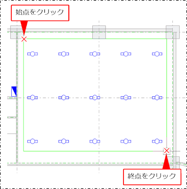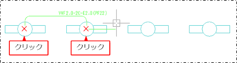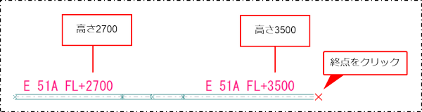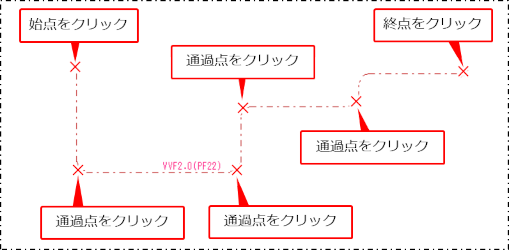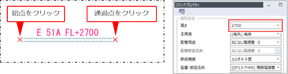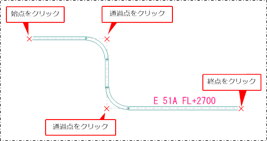 電線管の始点と通過点(高さを変更する位置)をクリックします。