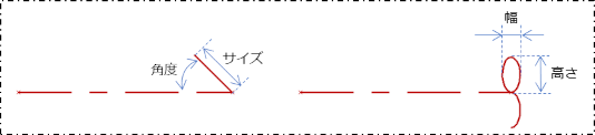 配線に付加する省略記号の種類、角度、高さ、幅、サイズを設定します(記号の種類により、設定できる項目が異なります)。左側のチェックボックスにチェックを付けた場合に設定できます。