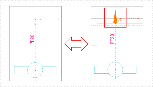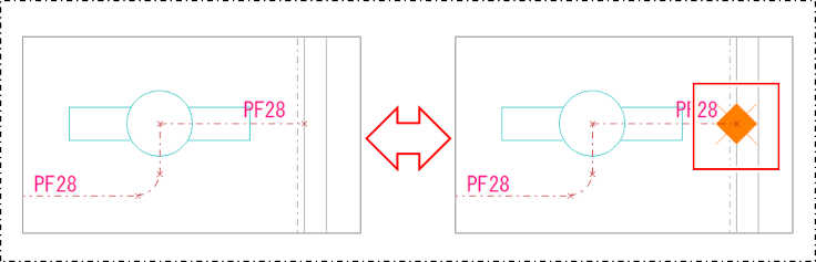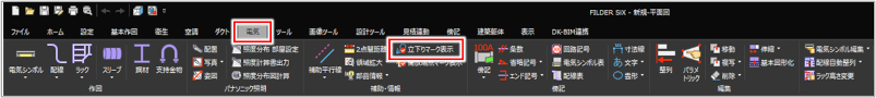 高さ方向に配線が作図されている箇所に、自動的に立下りマークを表示できます。立下りマークの表示・非表示は、以下の手順で切り替わります。