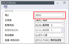 [コマンドプロパティ]の[高さ]を「3500」に変更します。