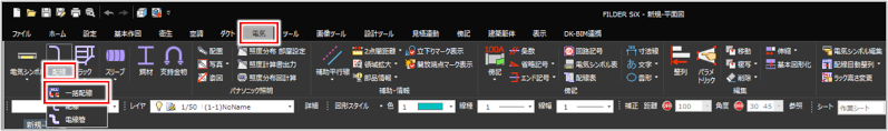 [電気]タブの[配線]プルダウンメニューから[一括配線]コマンド(