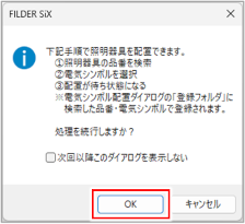[いいえ]ボタンをクリックした場合は、登録済みの電気シンボルが配置されます。
