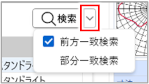 検索を実行します。プルダウンメニューから[前方一致検索]または[部分一致検索]を選択できます。