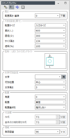 [配置]コマンドの[コマンドプロパティ]が表示されます。