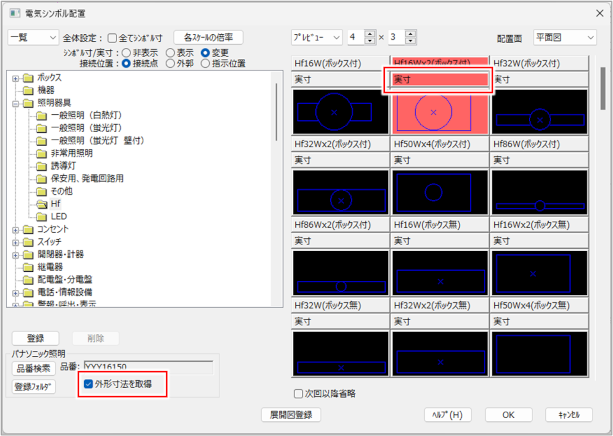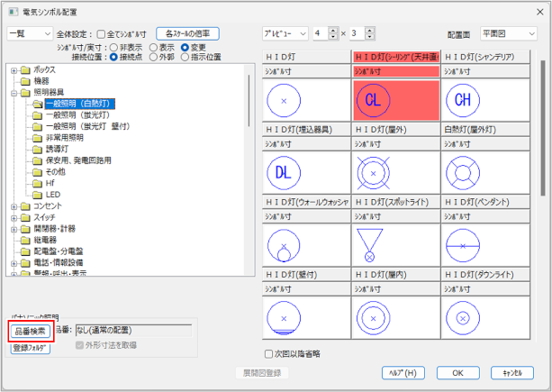 [電気シンボル配置]ダイアログから、パナソニック社の照明器具が削除されます。