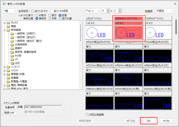 パナソニック社の照明器具に割り当てる形状を選択し、[OK]ボタンをクリックします。