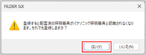 「登録すると配置済の照明器具がパナソニック照明器具と認識されなくなります。それでも登録しますか?」のメッセージが表示されます。