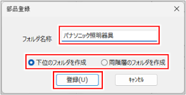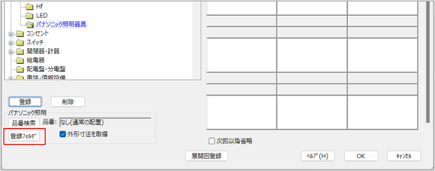 次回以降、パナソニック社の照明器具は作成したフォルダに登録されます。