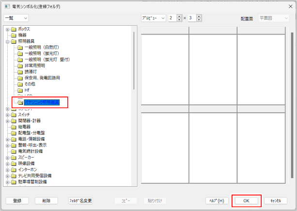[電気シンボル化(登録フォルダ)]ダイアログが表示されます。