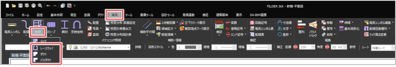 [電気]タブの[ラック]プルダウンメニューから[レースウェイ]コマンド(